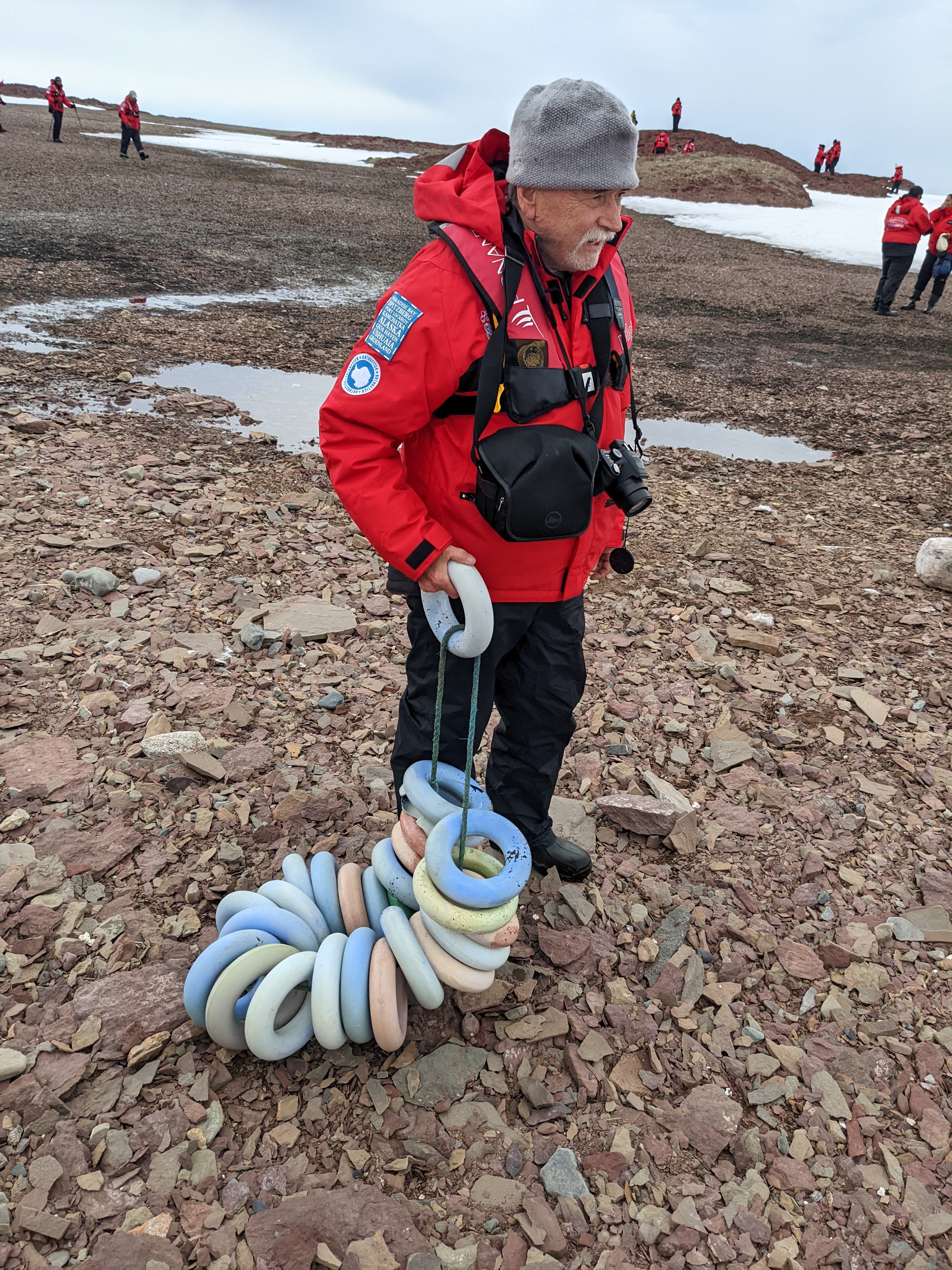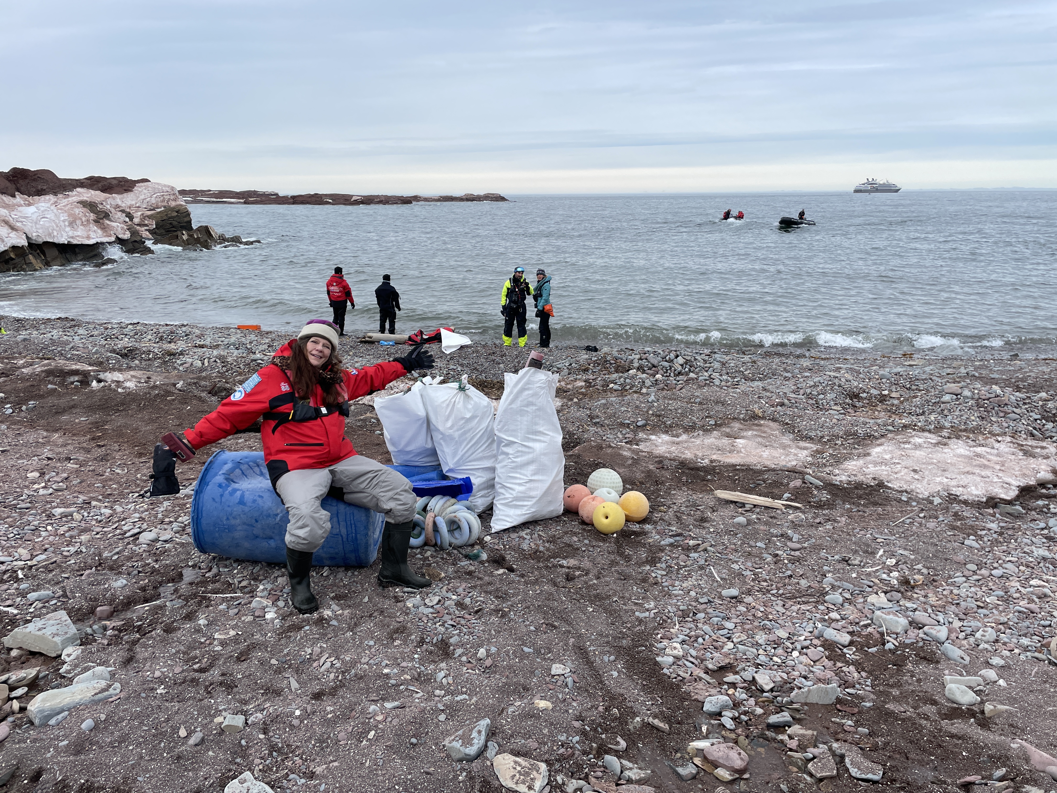Sandy is one of those women who cares about everyone and everything. The first day on land she just stuffed her pockets with debris and encouraged others to do the same. The next time she came prepared with huge burlap bags and left them in a pile. Within minutes every one of us were picking up the garbage that had washed to shore from fishing boats….and with the currents in the Arctic Circle they may have floated from a great distance. We were all pretty pleased with ourselves and are hoping this will become a thing. There are cloth laundry bags in each cabin which can be washed and reused multiple times. It is a small thing that can have huge consequences.